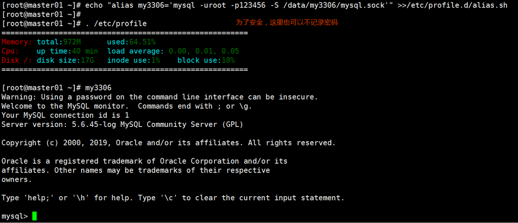 echo "alias my3306='mysql -uroot -p123456 -S /data/my3306/mysql.sock'" >>/etc/profile.d/alias.sh