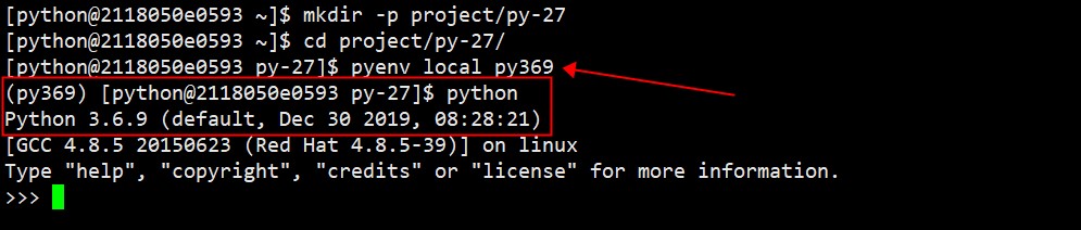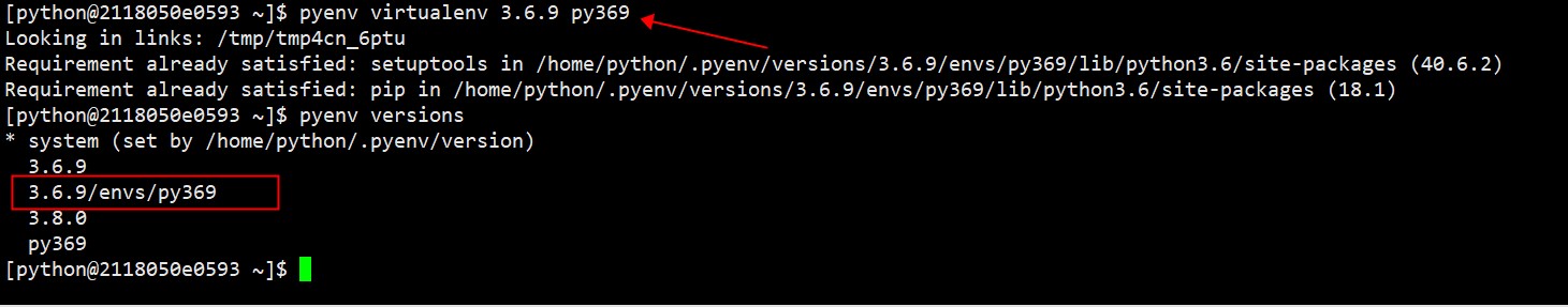 pyenv virtualenv 3.6.9 py369 # 先创建一个虚拟环境,py369是别名