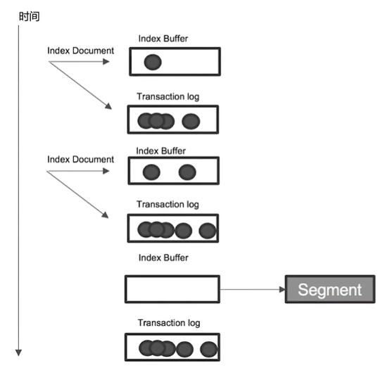 然后,Refresh 时将Index buffer 写入Segment,同时开放Segment 查询。index buffer 被清空,但Transaction log 会被保留