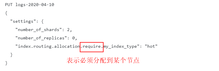 "index.routing.allocation.require.my_index_type": "hot" 指定分片