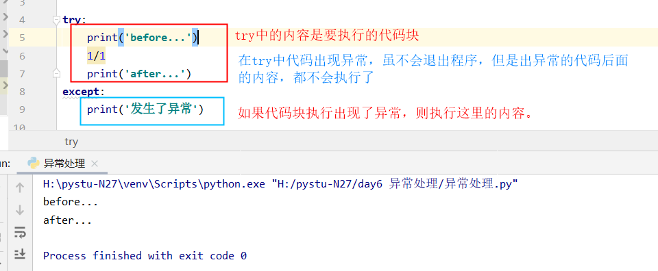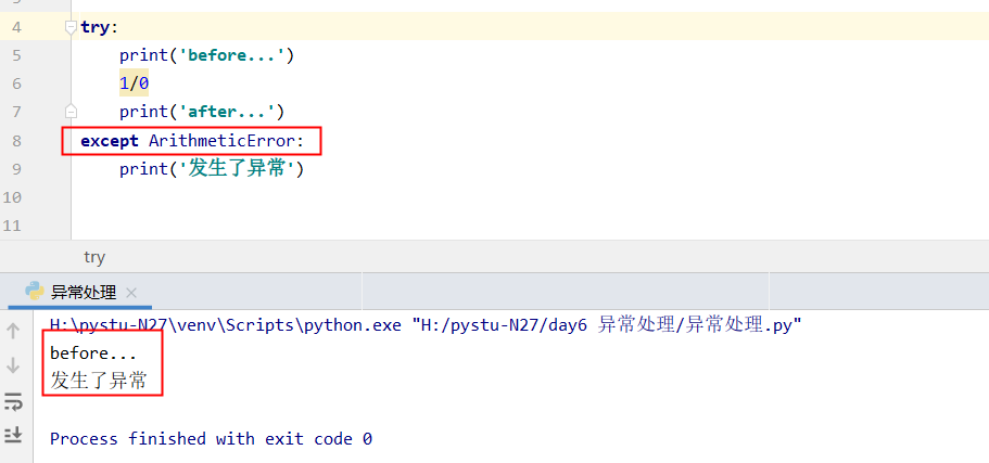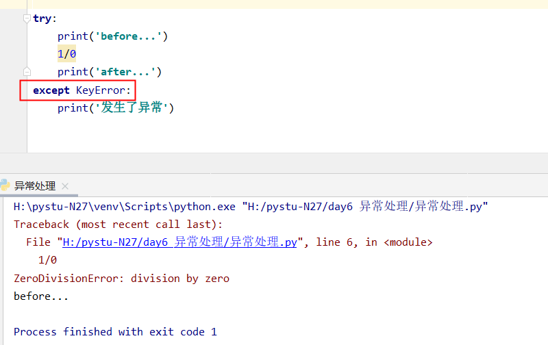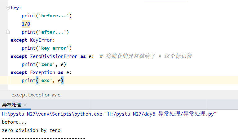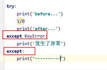 上面的expect: 代表什么异常都捕获,此外还可以指定要捕获的异常。