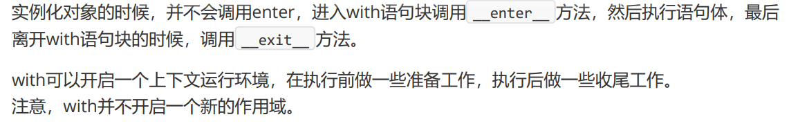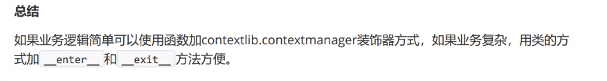 对于一些不方便进行资源释放的类,可以定义 enter 和 exit 方法,使用with进行资源释放。