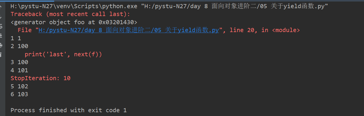 print('last', next(f)) # 最后的reutrn值,是最有一个元素,无法显示