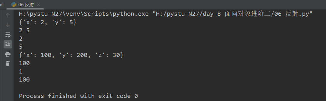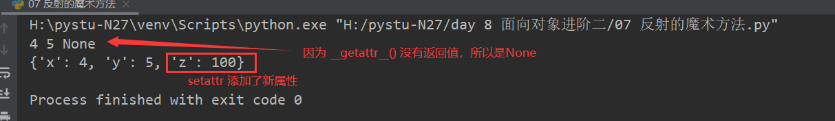 print(getattr(p1, 'y', 50)) # 打印p1.y, 如果不存在则p1.y = 50