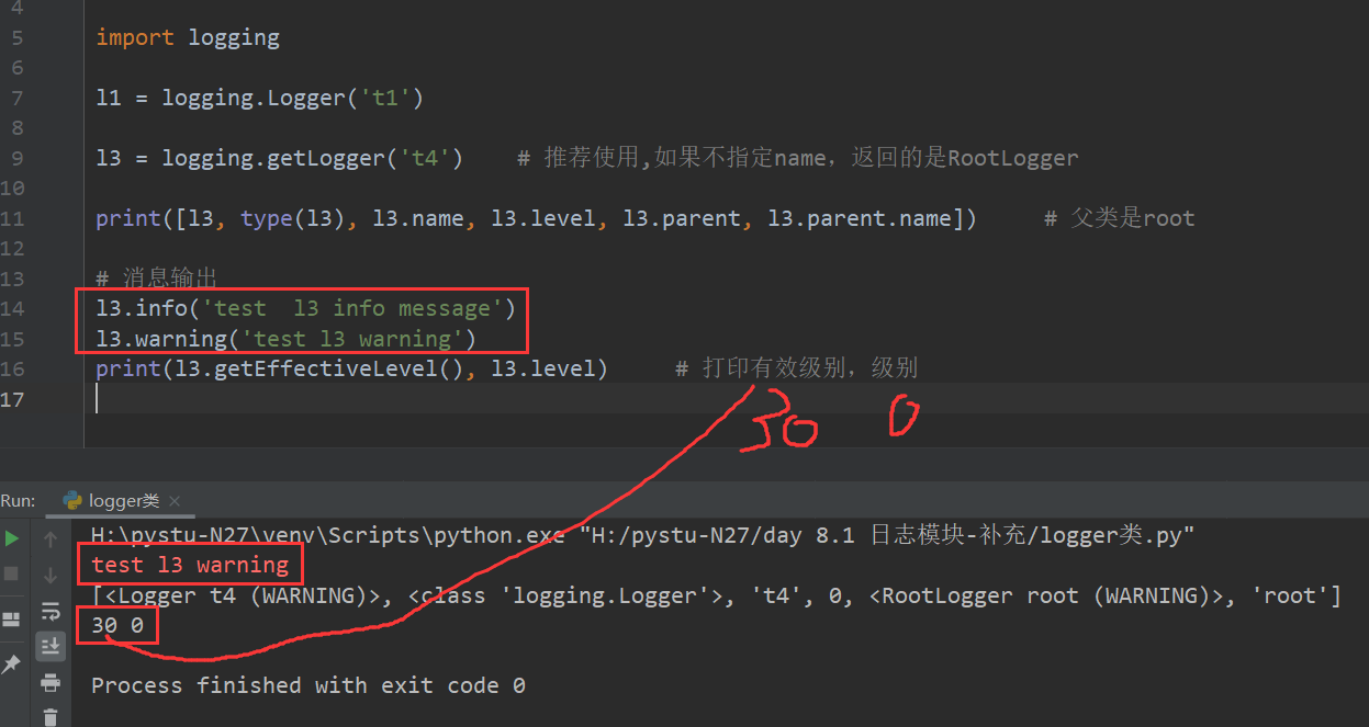 关于记录器级别,其实不能以表面的 级别 判断。因为记录器默认 0级别,0 代表 no set。但是它可以继承父类的,最近的父类的有效级别,也就是 RootLogger 的级别,也就是 30。