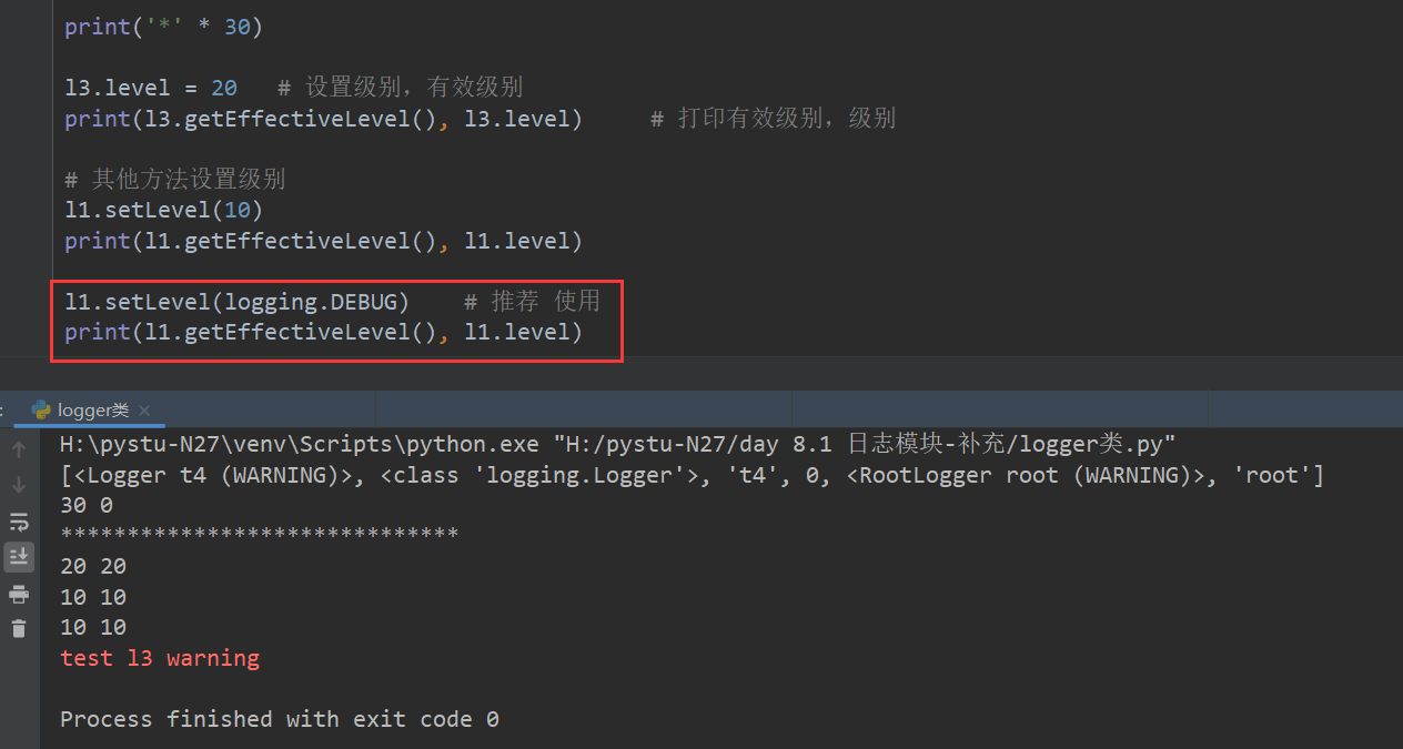 l3 = logging.getLogger('t4') # 推荐使用,如果不指定name,返回的是RootLogger