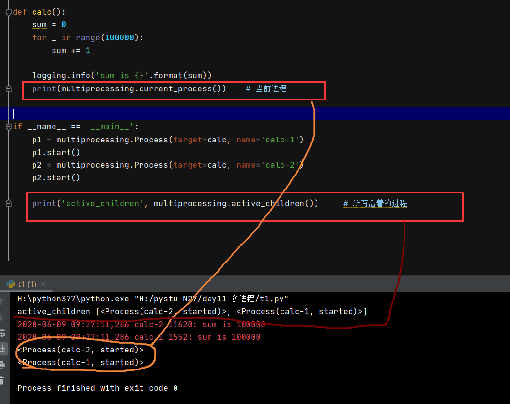 print('active_children', multiprocessing.active_children()) # 所有活着的进程