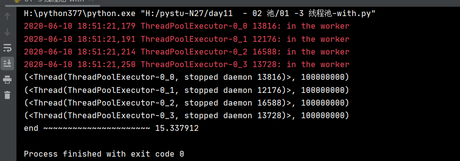 | ThreadPoolExecutor(max_workers=1) | 池中至多创建max_workers个线程的池来同时异步执行,返回 Executor实例 支持上下文,进入时返回自己,退出时调用shutdown(wait=True) |