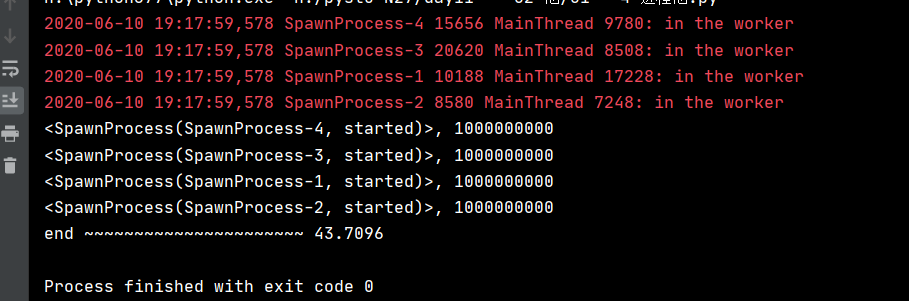 return "{}, {}".format(multiprocessing.current_process(), sums) # 执行函数的返回值就是 future.result()