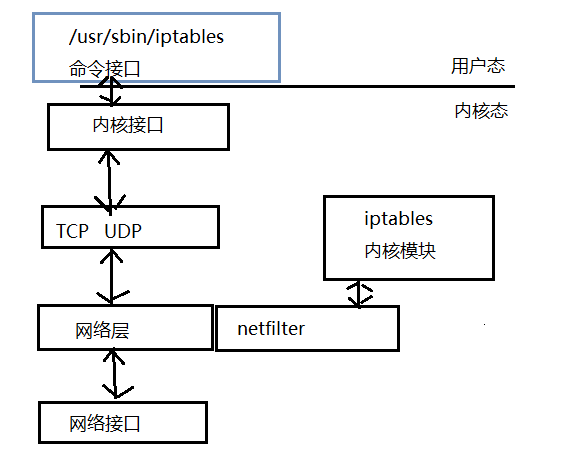 Netfilter,位于Linux内核中的包过滤防火墙功能体系,称为Linux防火墙的“内核态”。 Iptables,位于/sbin/iptables,是用来管理防火墙的命令工具,为防火墙体系提供过滤规则/策略,决定如何过滤或处理到达防火墙主机的数据包,称为Linux防火墙的“用户态”,也就是我们常说的iptables。