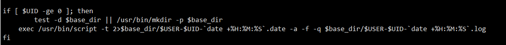这是用来记录“终端会话的”,前面一篇文章有提到,用来记录终端会话内容的。因为最近只做了这么一次操作,推测原因应该就是这个了,先将这段注释,然后source /etc/profile 环境变量又回来了。