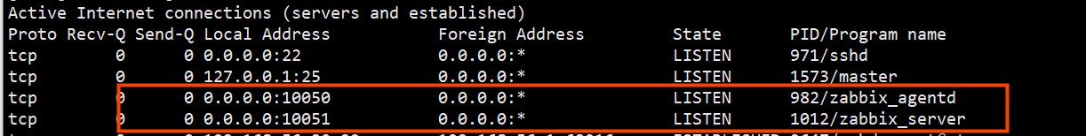 zabbix_server 监听在10051端口, zabbix_agent 监听在10050端口。